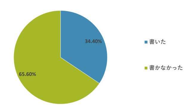 「あなたは2022年の年賀状を書きましたか。」に対し、「書いた(34.40%)」「書かなかった(65.60%)」と回答。