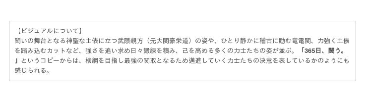 語りの役として、この素晴らしき大相撲の世界を皆様にお届けできること、大変嬉しい思いです。