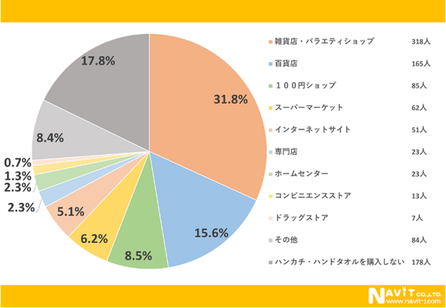 質問:主にどこでハンカチ、ハンドタオルを購入しますか?(対象者:1000人)