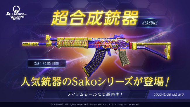株式会社ゲームオン[本社:東京都渋谷区、代表取締役社長:文 智秀(ムン ジス)]は、自社が運営するオンラインFPS『Alliance of Valiant Arms』(アライアンス オブ ヴァリアント アームズ、以下『AVA』)において、7月アップデートとして「超合成銃器 SEASON2」を本日2022年7月27日(水)より開始いたしました。