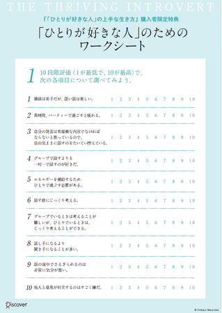 本書の購入者の方に、特典として「ひとりが好きな人」のためのワークシートをお付けします。