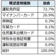 ネクスウェイの「本人確認BPOサービス※4」で目視・突合作業をした本人確認書類は、運転免許証とマイナンバーカードが確認書類の約99%を占めています。