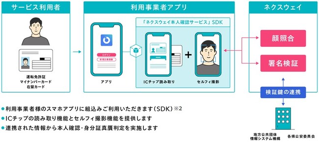 TISインテックグループの株式会社ネクスウェイ(本社:東京都江東区、代表取締役社長:松森 正彦、以下ネクスウェイ)は、犯罪収益移転防止法(以下、犯収法)※1に則り本人確認を行う「ネクスウェイ本人確認サービス」に、免許証やマイナンバーカード、在留カードなどのICチップ内にある個人情報を用いることで、デジタル完結の厳格な本人確認を実現する「ICチップ署名検証」をオプション機能として追加しました。