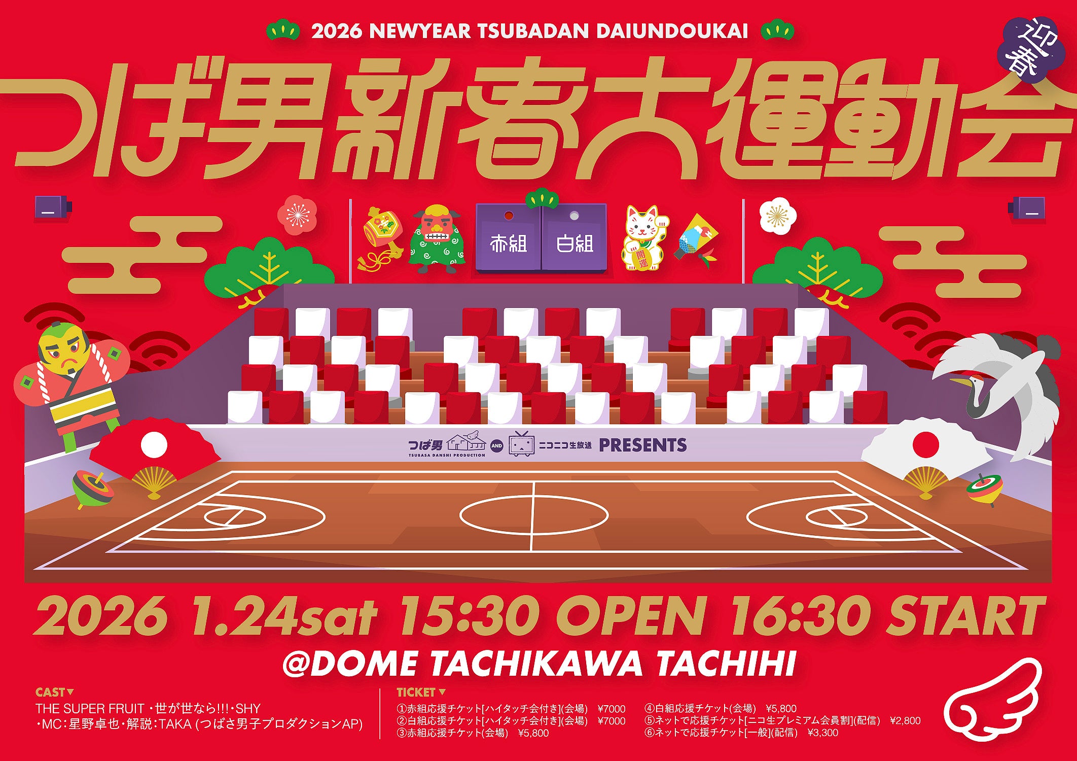 【THE SUPER FRUIT・世が世なら!!!・SHY所属】 ボーイズグループ事務所による「つば男新春大運動会2026」が1月24日(土)にドーム立川立飛で開催決定!