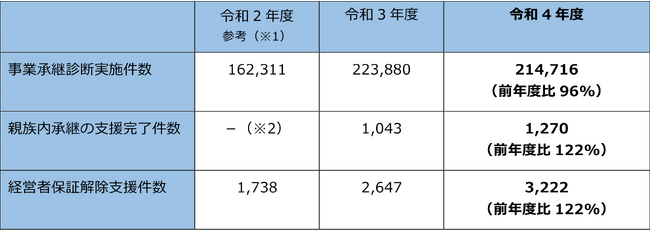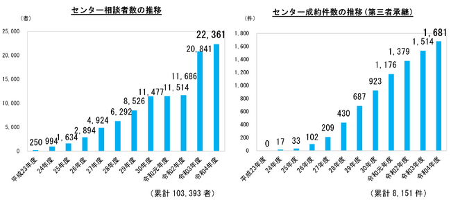 独立行政法人中小企業基盤整備機構(理事長:豊永厚志 本部:東京都港区)は、全国の事業承継・引継ぎ支援センター(以下「センター」という)(※)における、令和4年度実績を取りまとめました。