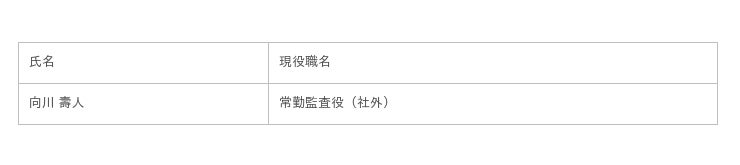 向川壽人氏の退任に伴う新任監査役候補者(内定)となります。