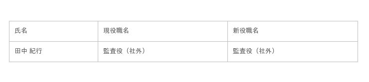 ・2022年5月25日開催の第17回定時株主総会にて監査役(社外)に選任されました藤田利之氏は任期継続中のため今回異動はございません。