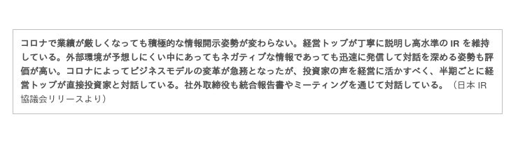 詳細につきましては日本 IR 協議会ウェブサイト( https://www.jira.or.jp )をご覧ください。
