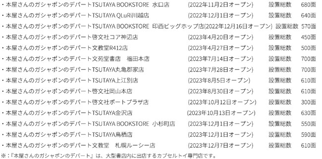 【全国展開中の『ガシャポンのデパート』・『本屋さんのガシャポンのデパート※』:計102店舗】