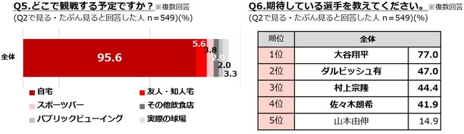 ・期待する選手は1位「大谷翔平」、「ダルビッシュ有」「村上宗隆」「佐々木朗希」が4割台で続く。