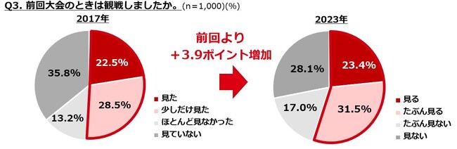 ・前回大会を見た人は51%で、ほとんど差はないものの3.9ポイント増加。