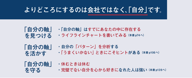 自分の生き方を振り返り、「自分の軸」を見つけ、具体的な新しい行動のきっかけになる1冊です。
