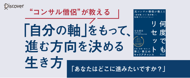株式会社ディスカヴァー・トゥエンティワン(本社:東京都千代田区、取締役社長:谷口奈緒美)は2023年12月22日に『何度でもリセット 元コンサル僧侶が教える「会社軸」から「自分軸」へ転換するマインドセット』(安永雄彦・著)を刊行しました。