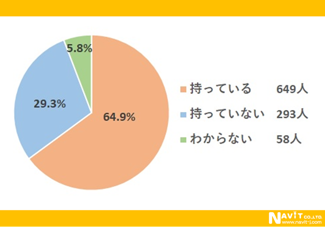 回答者1000人のうちアレルギーを「持っている」人は649人でした。「持っていない」が293人、「わからない」人が58人います。
