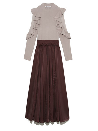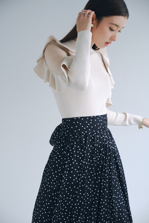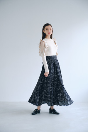 1枚で王道のフェミニンスタイルが完成するニットドッキングドレス。袖のフリルデザインは肌が透けるシアー感をプラスし、レディな装いに。スカートは軽くて柔らかい微光沢の生地を使用し、ドラマティックに演出しました。ウエストのリボンは前後で結ぶことが可能で、スタイルアップを叶えてくれるデザインに。冬のおでかけシーズンにぴったりのアイテムです。