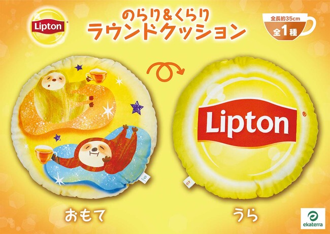 表にはのらり&くらりのイラスト、裏にはリプトンロゴがプリントされたラウンドクッションです。