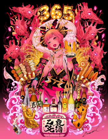 また、個展初日の3月3日(金)にはプレイベントとしてGODTAILの描いたあんちゃんのイラスト披露パーティーを実施いたします。当日はGODTAILと365日酒を飲むあんちゃんも在朗し、グッズや限定オリジナルボトルの販売もございます。