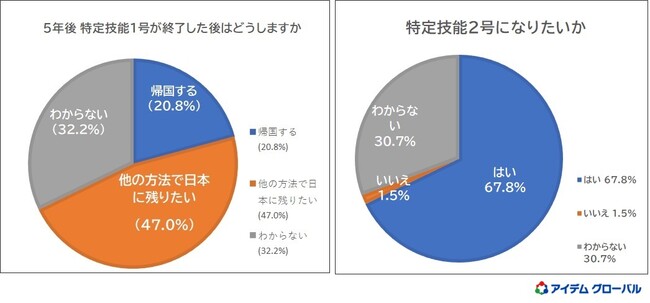 他の方法で日本に残りたいが約5割、特定技能2号になりたい67.8%