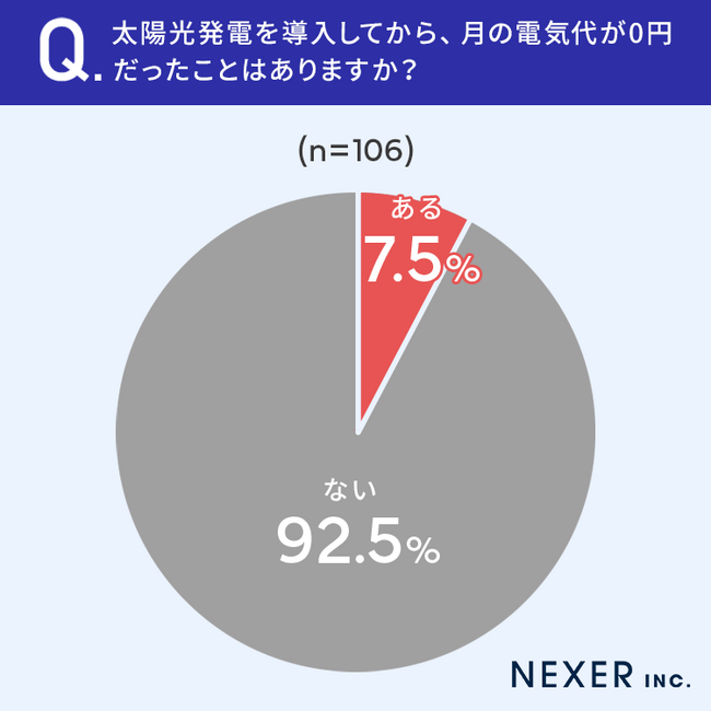 質問5:太陽光発電を導入してから、月の電気代が0円だったことはありますか?