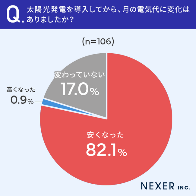 ■82.1%が自宅に太陽光発電を設置してから、月の電気代が「安くなった」