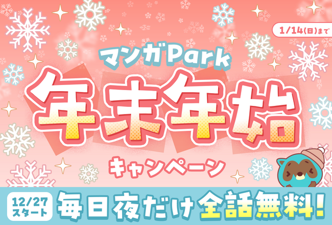 マンガアプリ「マンガPark」で12/27(水)〜1/5(金)毎夜21:00〜23:59の期間限定企画!