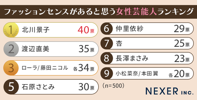 株式会社NEXERは、リシャールとの共同調査で「ファッションセンスがあると思う芸能人」に関するアンケートを実施したので、その結果を紹介します。