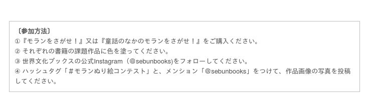 絵本「モラン」シリーズの課題作品に色をつけて、モラングッズを手に入れよう!