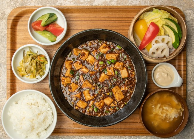 8月限定メニューの他におすすめしたいメニューが日替わり定食「【旨・辛・痺】麻婆豆腐」。山椒の痺れと唐辛子の辛味が効いた四川風麻婆豆腐定食です。夏のスタミナ食としてぜひご賞味ください。