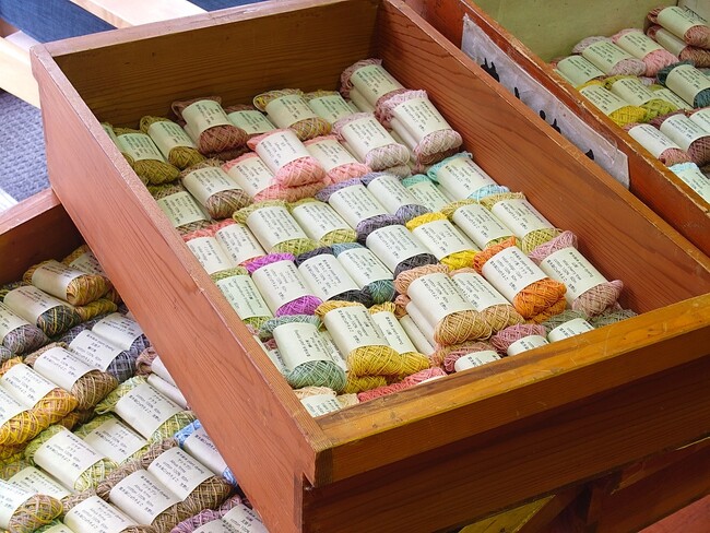 こぎん刺しや刺し子を現代の人々に受け継ぎ、楽しんでもらえるように、糸を虹色に染めている青森県の工房。草木染めは、主に青森の草木花を使い、季節の色で染めています。