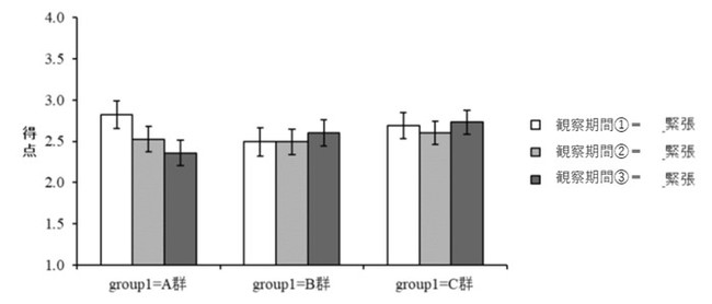 A 群において、観察期間全体を通して「緊張」の項目が有意に低下しました。