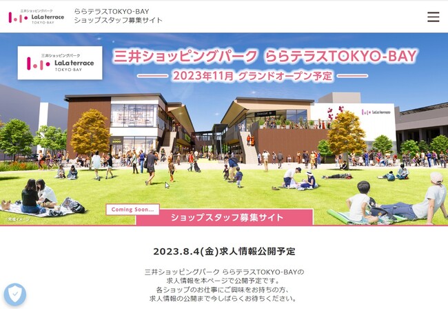 三井ショッピングパーク ららテラスTOKYO-BAYにおける採用支援を受託 採用センターを開設し、スタッフ募集をワンストップで対応します