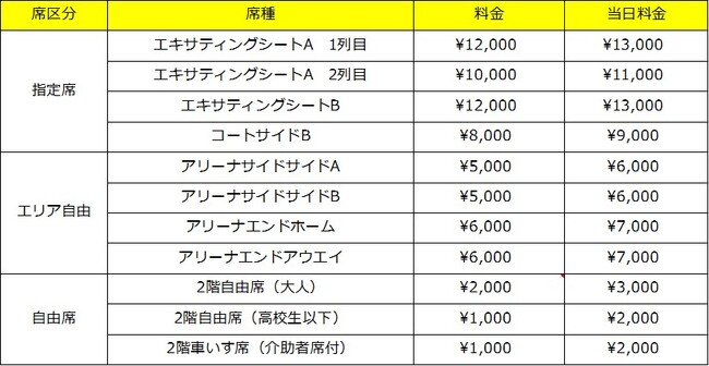 ・お付き添いの方はパイプ椅子でのご観戦となります。また同伴者が2名以上の場合は同様の席種をご購入ください。