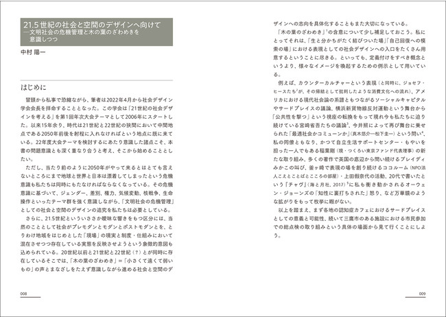 その点を受け、本書では、コロナ禍で見直された人と人との距離感や空間コントロールに対する意識の変容は、社会そして空間という概念をどのように変化させるのかという問いと、その変化との立ち向かい方のヒントを指し示す。