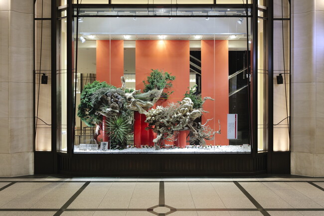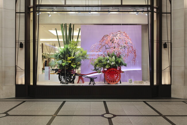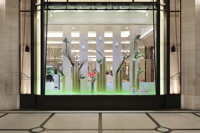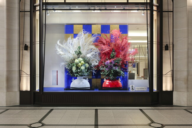 梅田はお正月ムードに!巨大ウィンドー7面で迫力のいけ花『嵯峨御流“2023迎春”』!