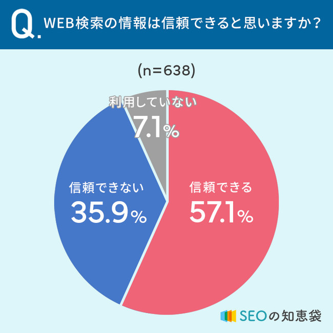 57.1%と半数以上の方が、WEB検索の情報は「信頼できる」と回答しています。
