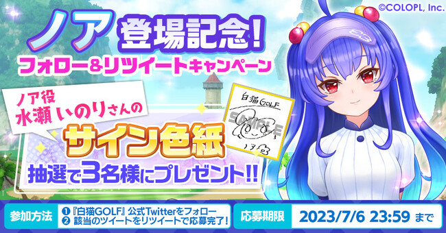 株式会社コロプラ(代表取締役社長:宮本貴志、本社:東京都港区、以下「コロプラ」)は、スマートフォン向けゲーム『白猫GOLF』にて、新ゴルファー「ノア(CV:水瀬 いのり)」が登場したことをお知らせいたします。