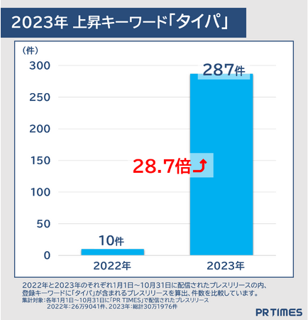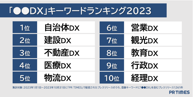 株式会社PR TIMES(本社:東京都港区、代表取締役:山口 拓己、東証プライム:3922)は2023年11月30日(木)、運営するプレスリリース配信サービス「PR TIMES」において、2023年1月1日〜2023年10月31日に企業から発表いただいたプレスリリース総計30万1976件を対象に、データ分析と総括、業界分析と各種ランキングなどを発表いたしました。