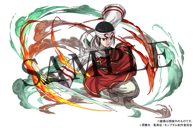 本コラボでは、主人公の「信(しん)」をはじめ、主人公の師「王騎(おうき)」や若き日の始皇帝「嬴政(えいせい)」、“飛信隊”の副長を務める「羌瘣(きょうかい)」に同じく“飛信隊”の軍師「河了貂(かりょうてん)」など、『キングダム』には欠かせないキャラクターたちが、多数登場予定です。