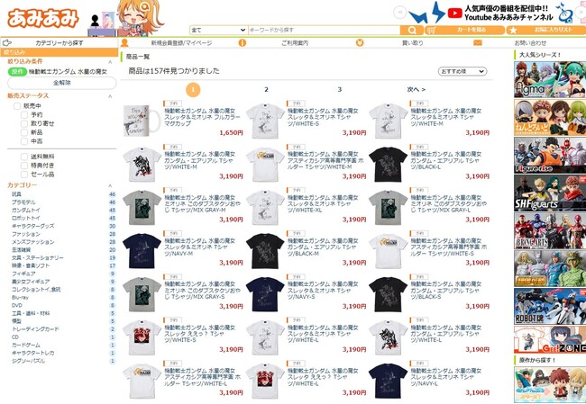 ホビー通販大手の「あみあみ」(運営:大網株式会社、東京都文京区)は、メーカー「コスパ」より『機動戦士ガンダム 水星の魔女』の「アスティカシア高等専門学園 ホルダー Tシャツ」「ミオリネ このダブスタクソおやじ Tシャツ」「スレッタ ええっ? Tシャツ」が登場。現在、ご案内中です。