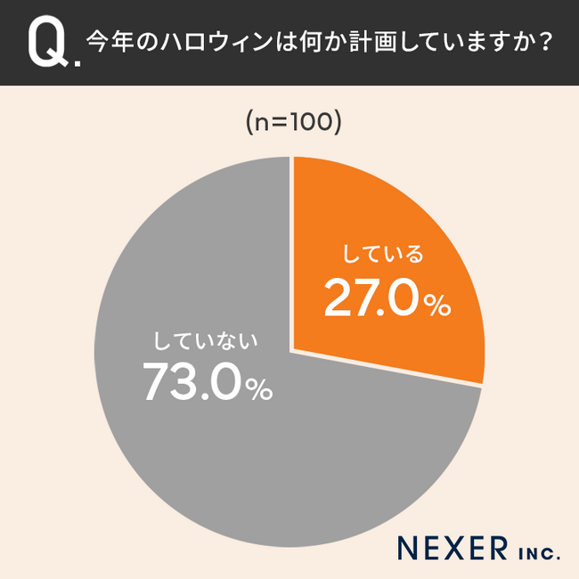 27%の方が、今年のハロウィンは何か計画を「している」と回答しています。