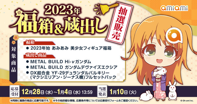 ホビー通販大手の「あみあみ」(運営:大網株式会社、東京都文京区)は、自社の運営するあみあみオンラインショップにて「福箱&蔵出し抽選販売」を実施いたします。