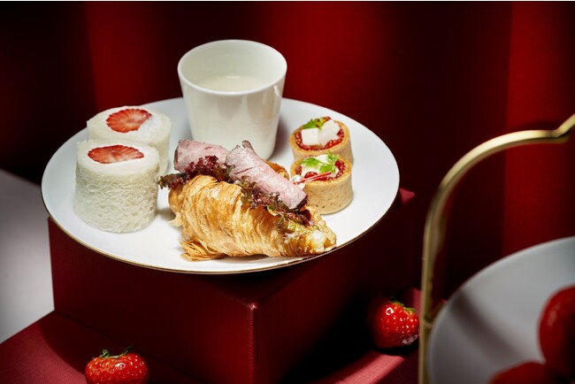 (セイボリー)いちごクリームサンド/クロワッサンサンド(ローストビーフ、ピクルス、サニーレタス)いちご・帆立・モッツァレラのタルトレット/聖護院かぶらのポタージュ