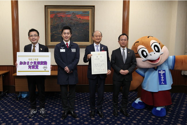 その結果、J.フロント リテイリングの「大丸心斎橋店と心斎橋 PARCO おける、再生可能エネルギー100%の ESG モデル店舗」の取り組みが、「緩和部門」において、最も優れた取り組みを実施した事業者等に与えられる、「大阪府知事賞」に選ばれました。