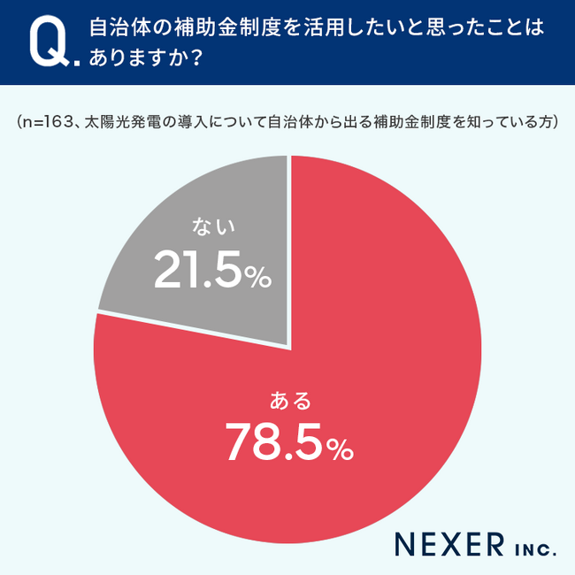 78.5%と8割近くの方が、自治体の補助金制度を活用したいと思ったことが「ある」と回答しています。