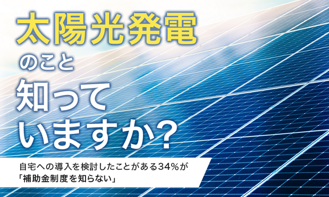 【太陽光発電のこと知っていますか?】自宅への導入を検討したことがある34%が「補助金制度を知らない」