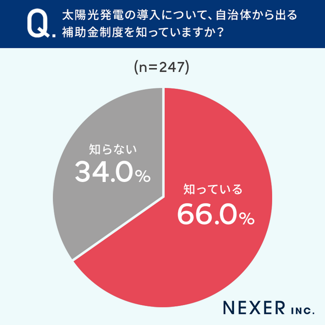 ■34%が太陽光発電の導入について、自治体から出る補助金制度を「知らない」