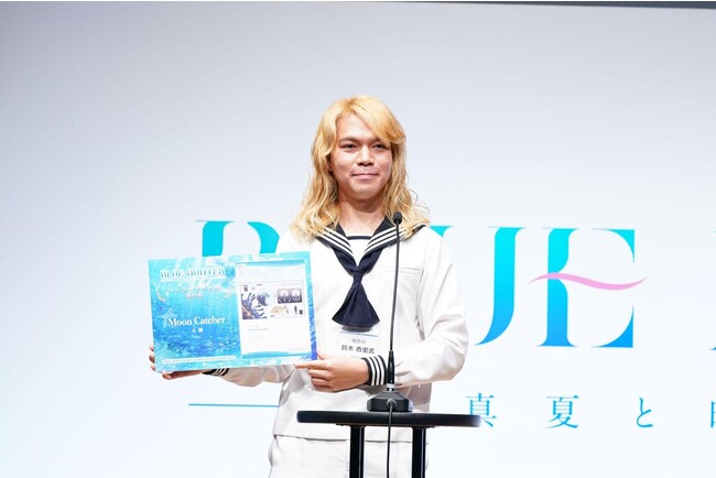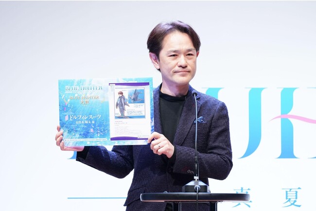 授賞式が始まってすぐ、『BLUE HUNTER〜真夏と時のカイリュウ〜』のメインキャラクターである日下部 真夏(くさかべ まなつ)、漣 燈子(さざなみ とうこ)、須藤 藍白(すどう あしろ)、真行寺 沙羅(しんぎょうじ さら)の声が会場に響き、『BLUE HUNTER』や海を未来へ引き継ぐための「海と日本プロジェクト」の紹介がありました。「ブルーハンターも未知の海洋生物を見つけることで、海の可能性を広げていきたいと思っているので、思いは一緒です」と語る真夏。4人の話に会場の空気は一瞬で華やかに。授賞式や『BLUE HUNTER〜真夏と時のカイリュウ〜』への期待感が高まります。