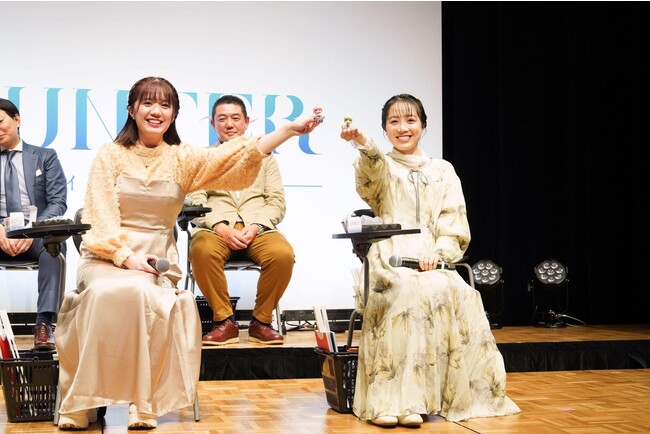 また、ブルーハンターグッズ第1弾として「ちょびっとキャラ 日下部真夏・須藤藍白・真行寺沙羅・漣燈子」が12月18日に発売開始したことが発表され、声優のみなさんにフィギュアがプレゼントされました。