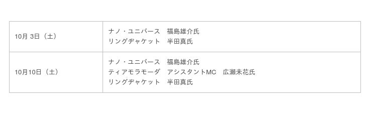※当日(10月3日・10日)は、空き状況次第で入場チケットをお持ちでないお客さまのご案内をさせていただく可能性がございます。