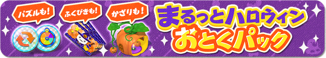イベント開催を記念して、「ハロウィンふくびきチケット」や特別な「かざり」、「パズルスキルセット」が購入できる「まるっとハロウィンおとくパック」が登場しました。このおとくパックによって、にゃんこと過ごすハロウィンイベントをより一層お楽しみいただけます!